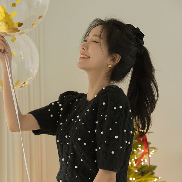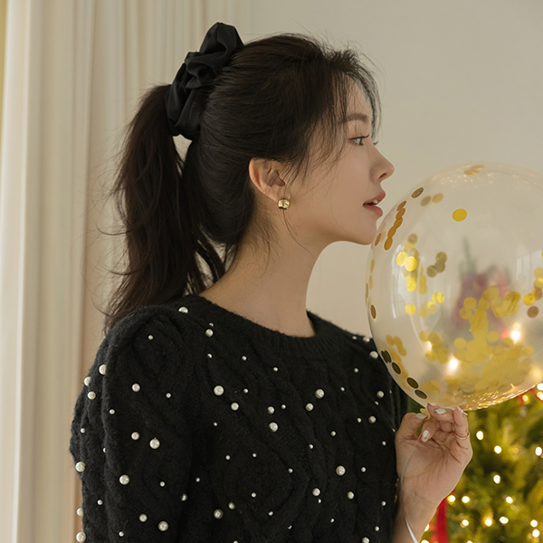 滑雪 珍珠 装饰 泡泡袖 羊毛 针织衫