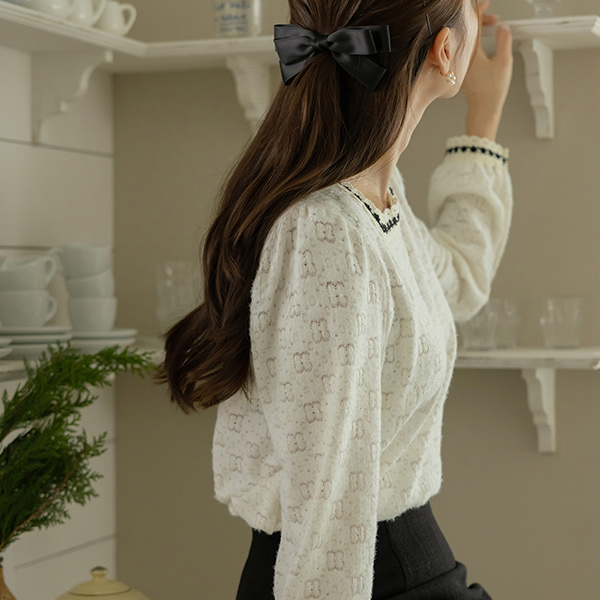 浪漫 桃皮拉绒 蕾丝 罩衫
