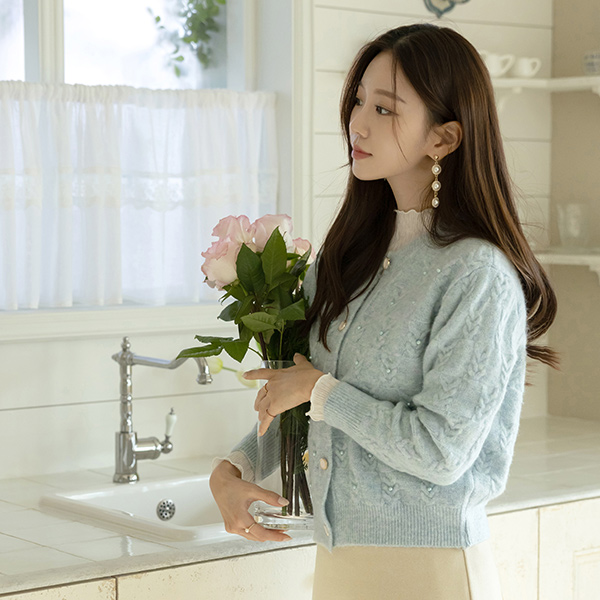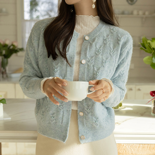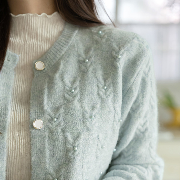 ODE 缆绳 图案 珍珠 装饰 针织衫 开衫