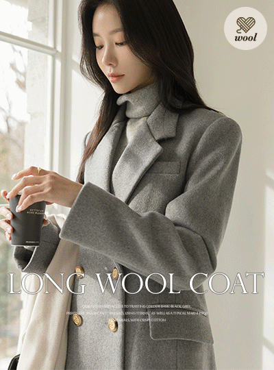 古典 线条 黄金 扣子 斯利姆 长款 羊毛 大衣