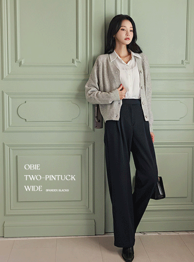 腰头 pintuck 宽松 弹力 宽松长裤 (衬里加绒)