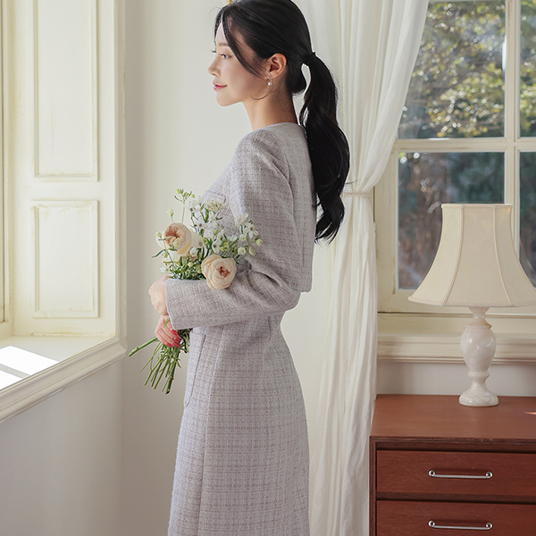 浪漫 两件套 分层 粗呢 连衣裙