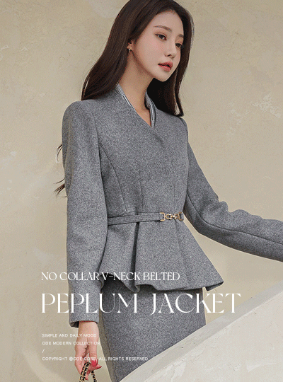 稍厚的 无领 V字领 束带 荷叶边 夹克
