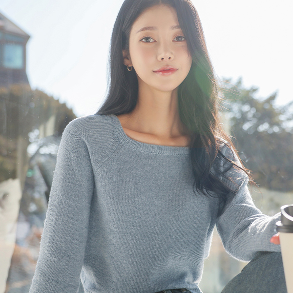 日常 方形 圆领 插肩 针织衫