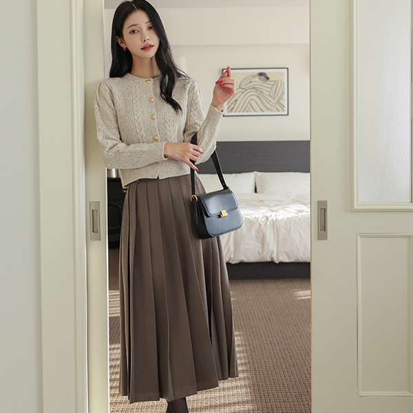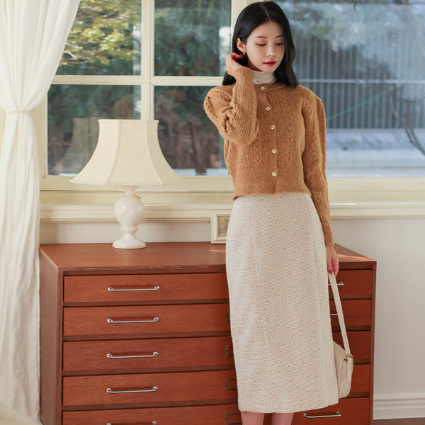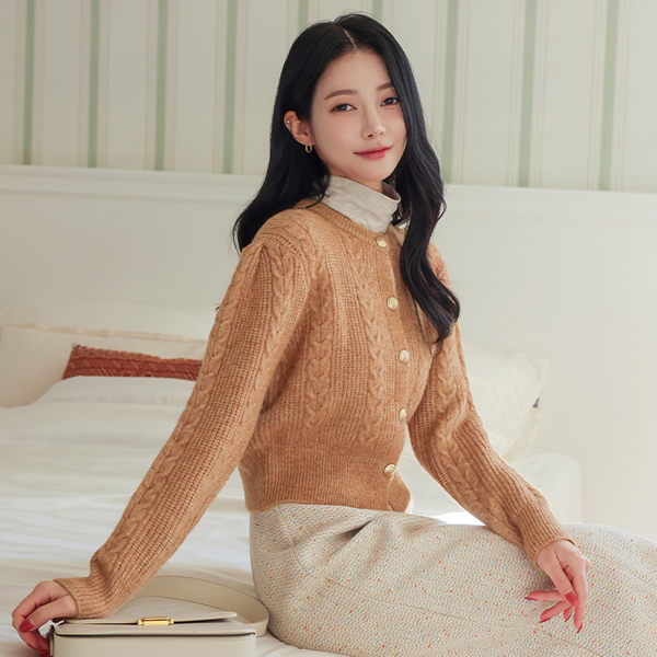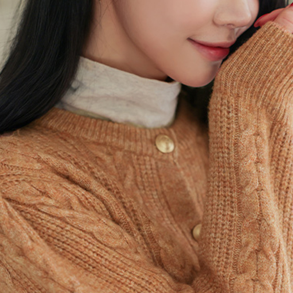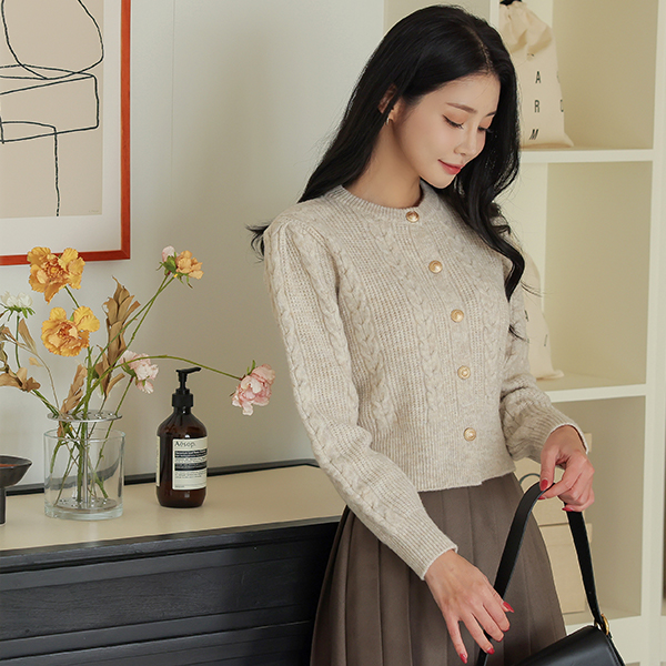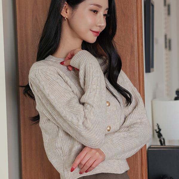 缆绳 黄金 扣子 泡泡袖 袖 羊毛 开衫