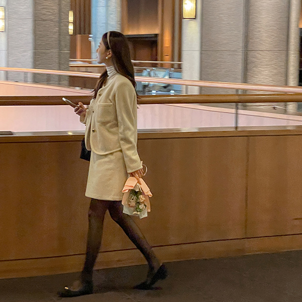 黄金 扣子 翻毛皮 平底鞋