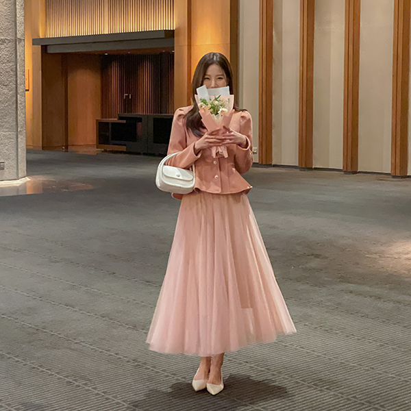 玫瑰 双 薄纱 束腰连衣裙 长款 裙子