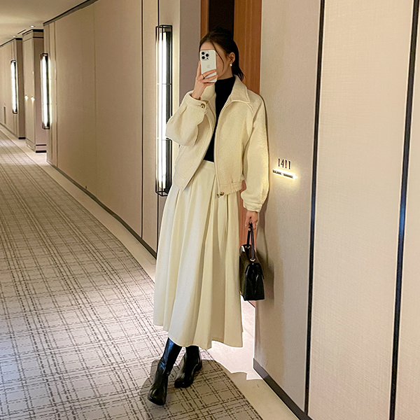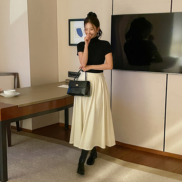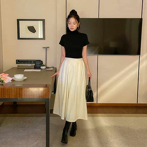 에비뉴 柔软的 天丝&羊毛 褶皱领 高领T恤