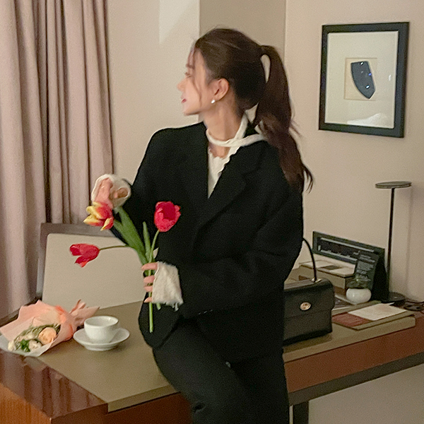파리스트 3个纽扣 羊毛 结子花式 基本 夹克