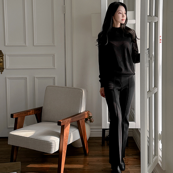 腰头 pintuck 宽松 弹力 宽松长裤 (衬里加绒)