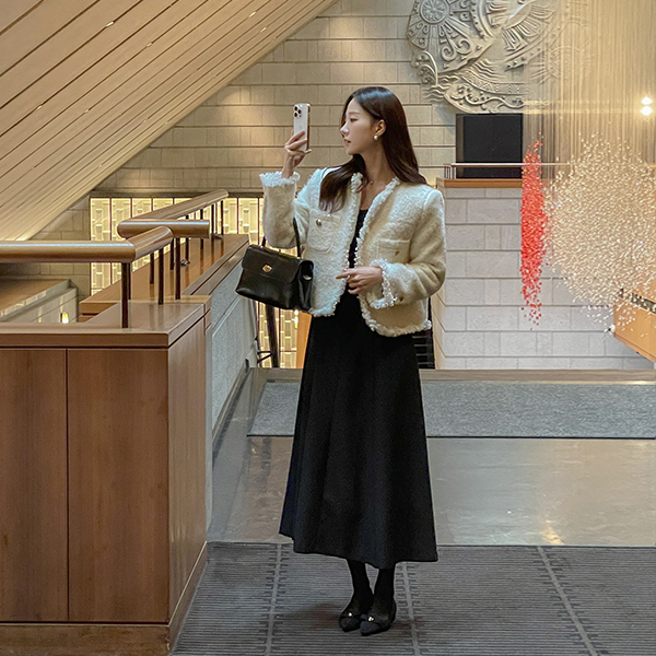 赫本 圆领 A字型 弹力 长款 连衣裙
