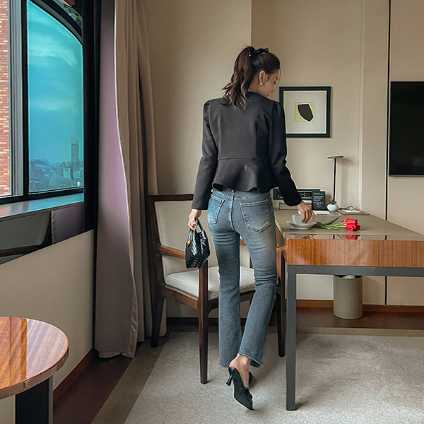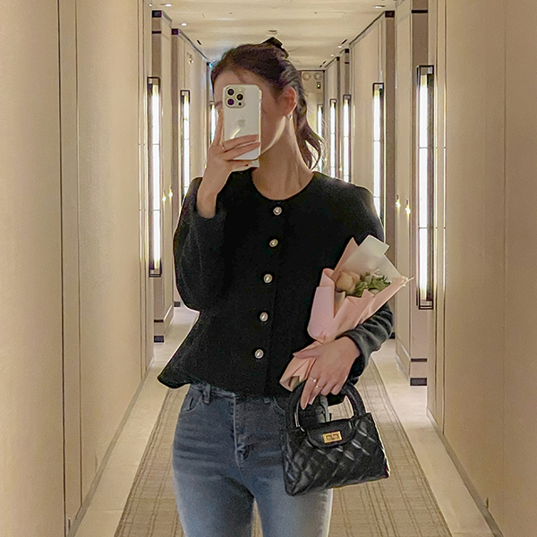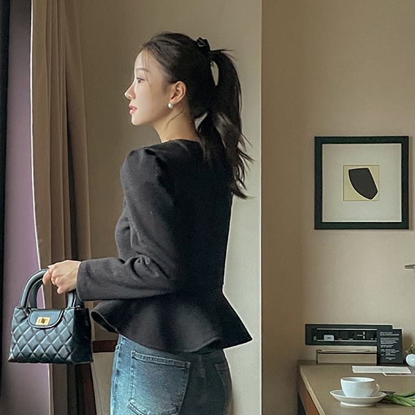 [O:neul] Charmant 荷叶边 线条 弹力 羊毛 罩衫