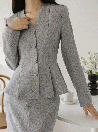 르이엘 V字领 荷叶边 夹克