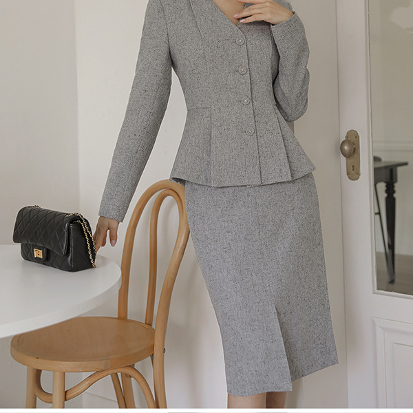 르이엘 高腰 H字型 前面开叉 裙子
