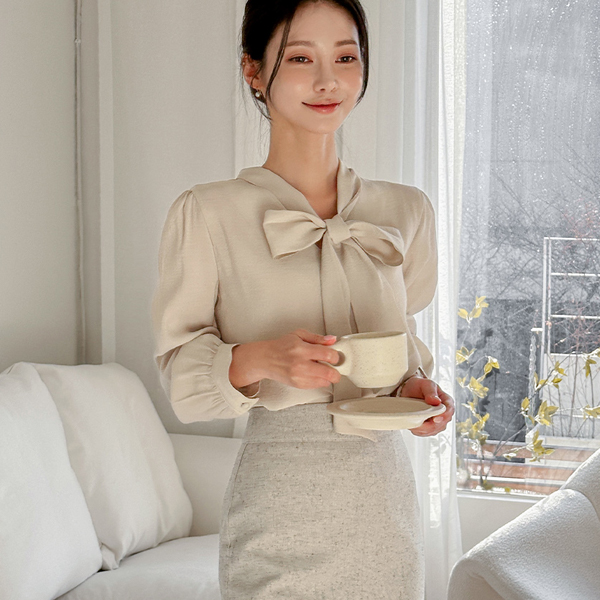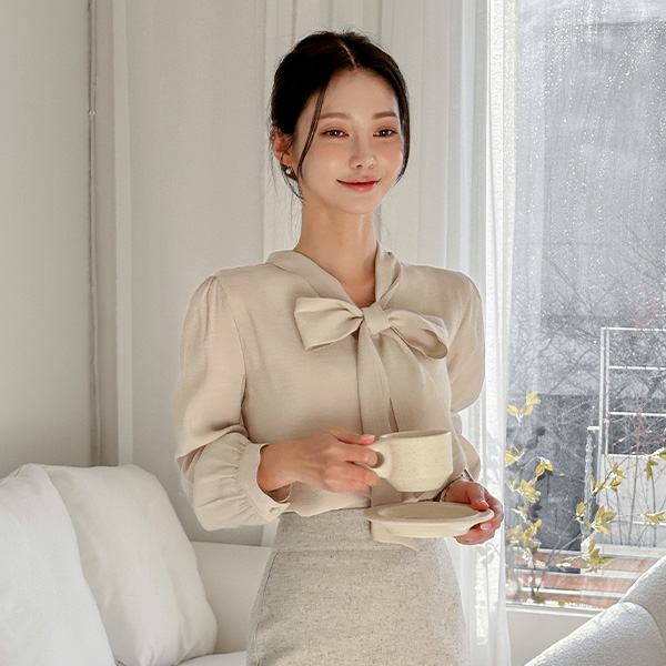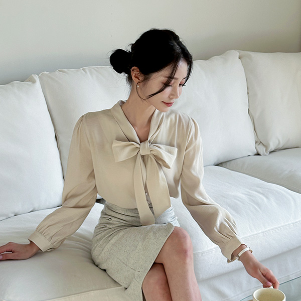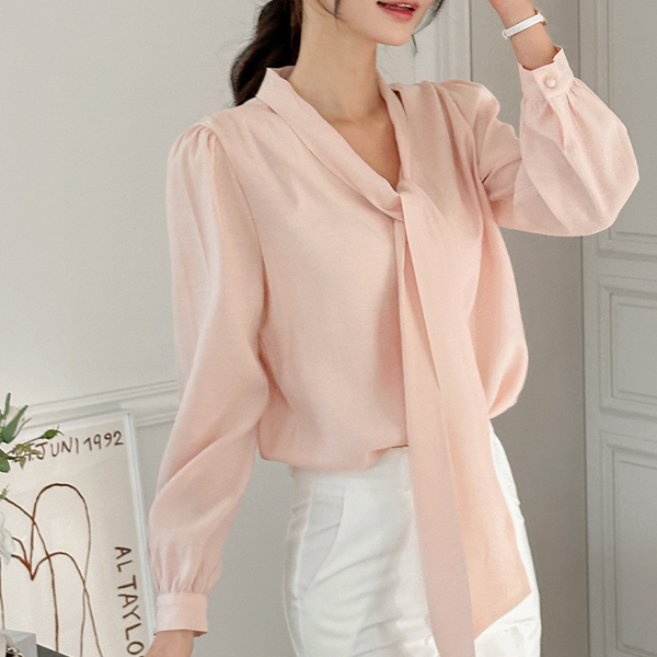 V字领 蝴蝶结 领带 豆扣 罩衫