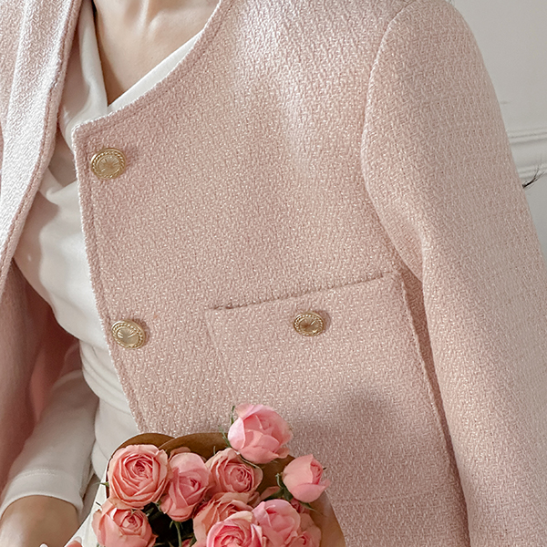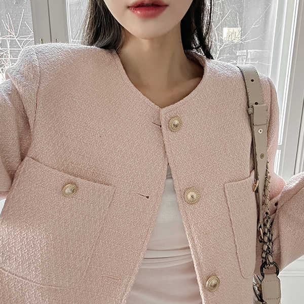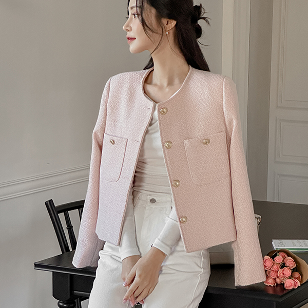 柔色 颜色 圆领 粗呢 夹克