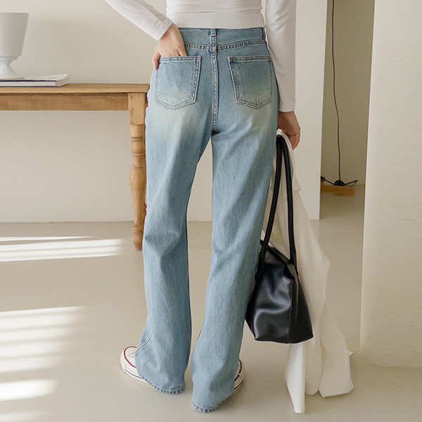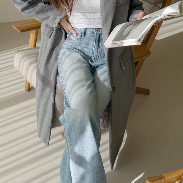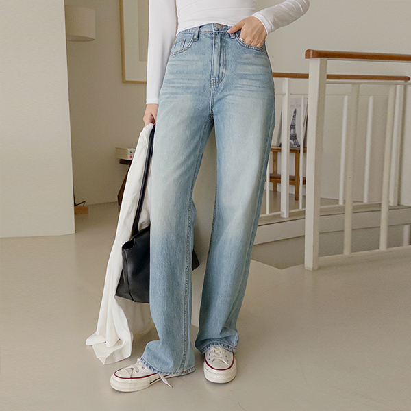 皇冠 宽绰 水洗 长款 牛仔色 裤子