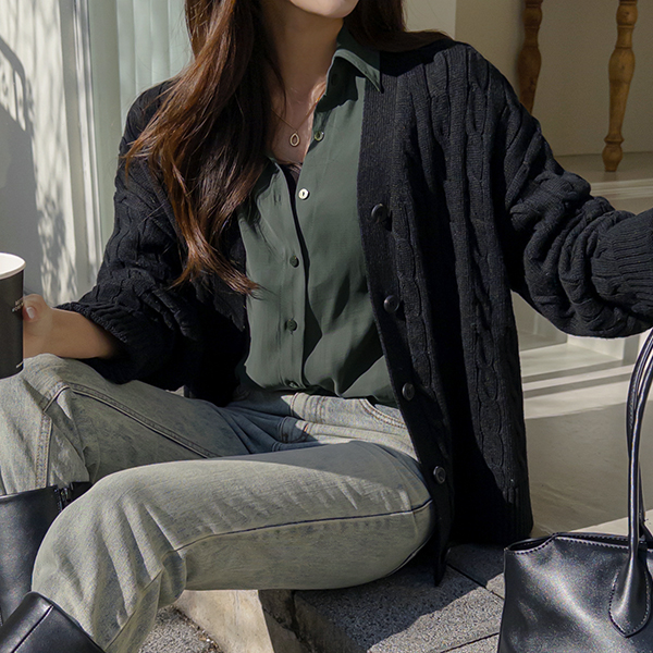 柔色 颜色 缆绳 宽松 开衫