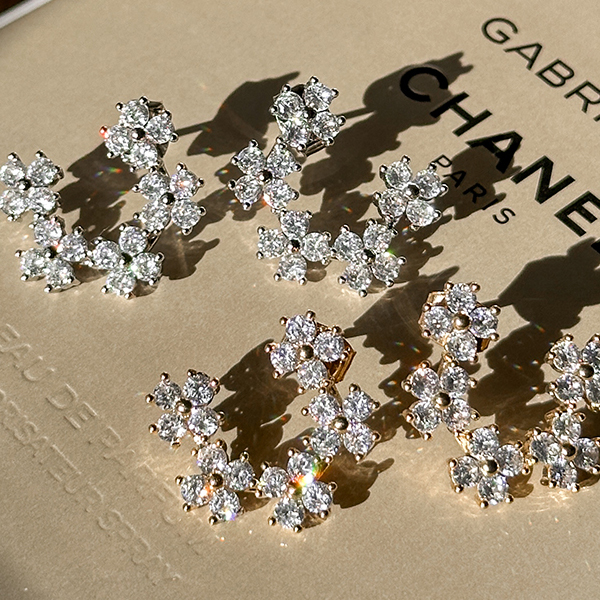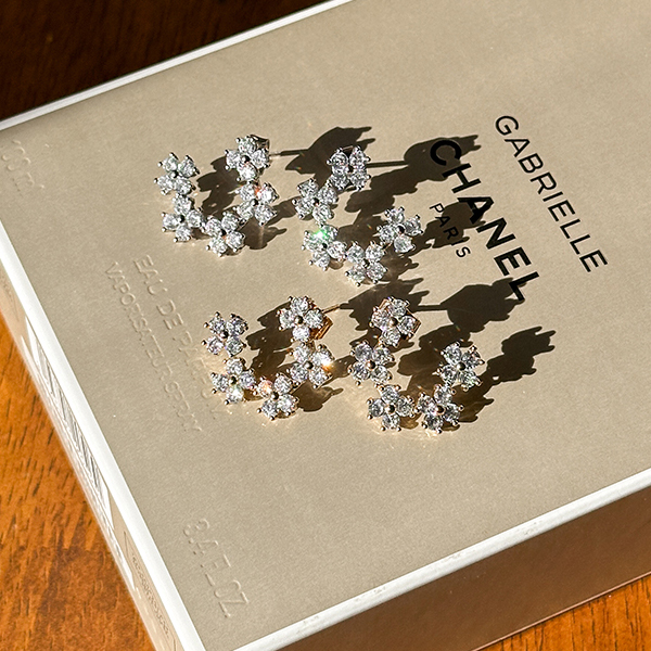 闪亮 花纹 圆形 镶钻 耳环