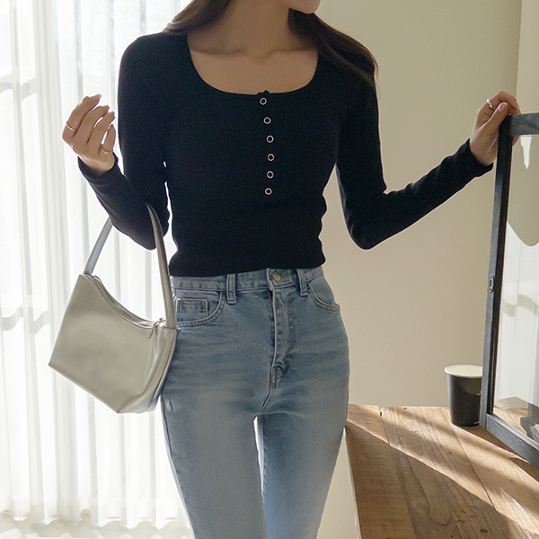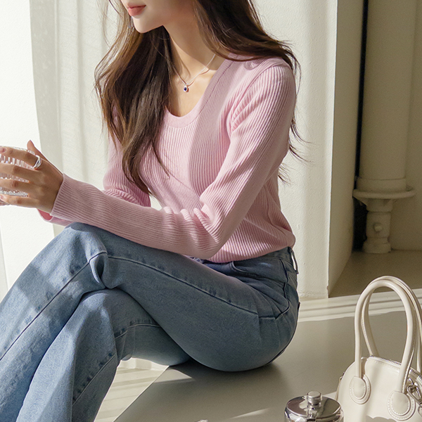 竹节棉 苗条 颜色 U领 基本 条绒 针织衫