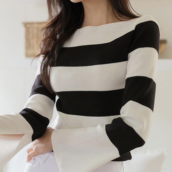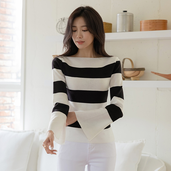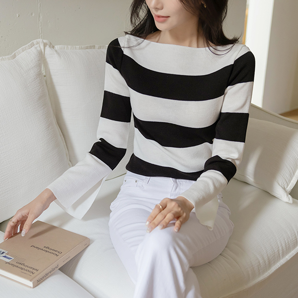 오프닝 袖 开衩 船形领 针织衫