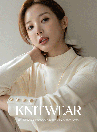 半高领 袖 黄金 扣子 点缀 针织衫