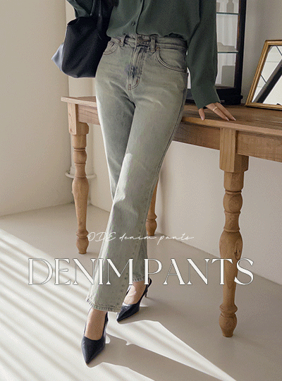 水洗 点缀 内部拉绒 斯利姆 一字型 牛仔色 裤子