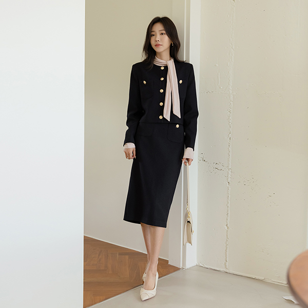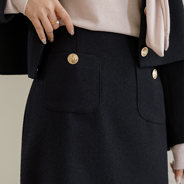 Linne 金色纽扣 H字型 粗呢 Set-up 裙子
