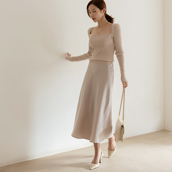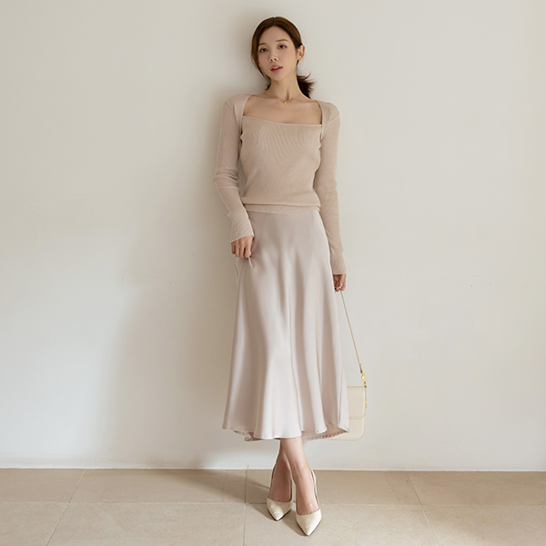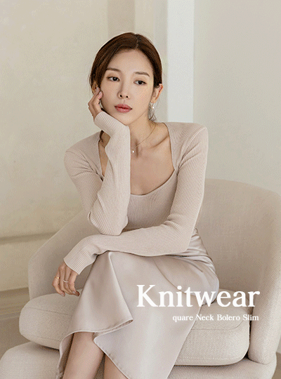 显瘦的 方领 短上衣 条绒 斯利姆 针织衫