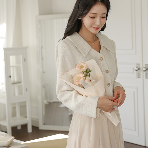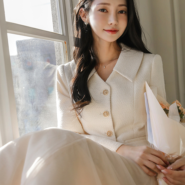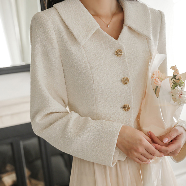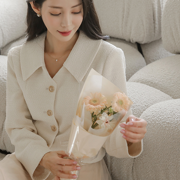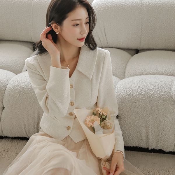浪漫 V字领 领子 羊毛 粗呢 夹克