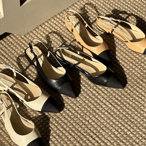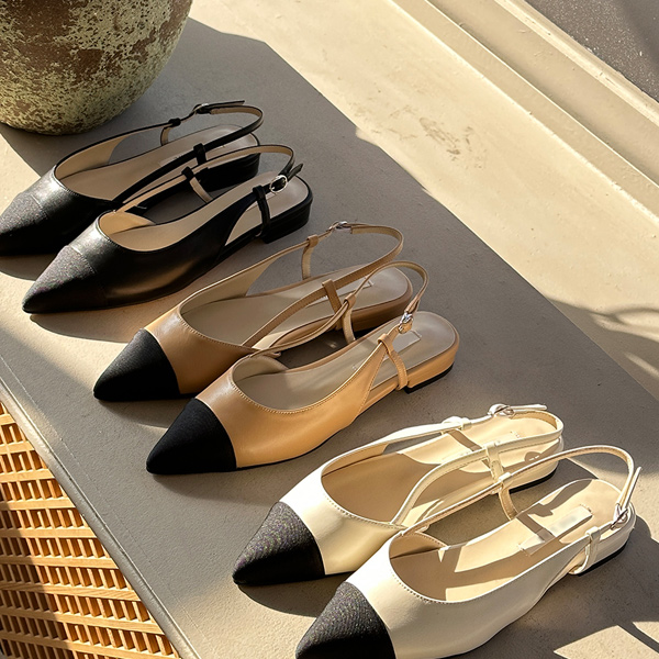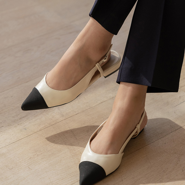 双色 配色 细高跟 平底鞋 露脚后跟鞋
