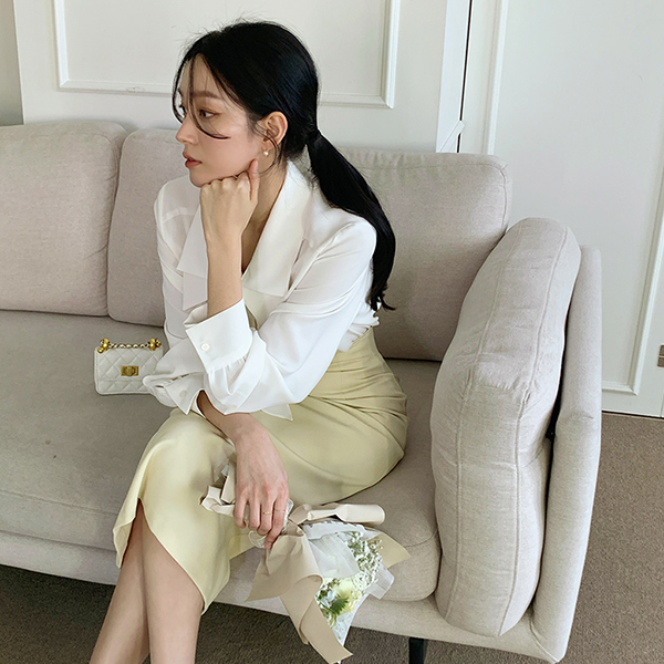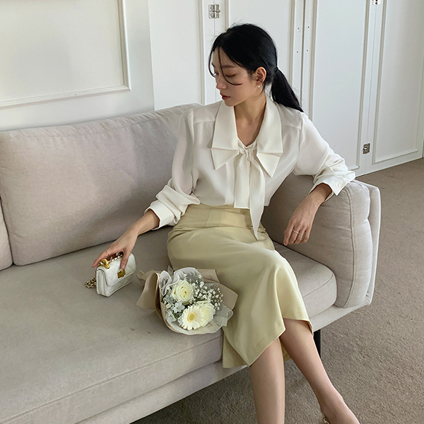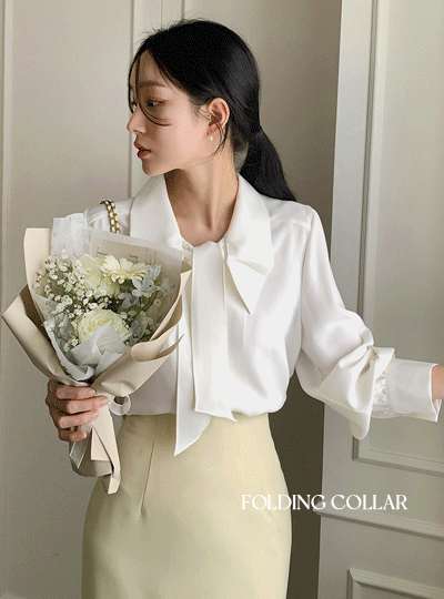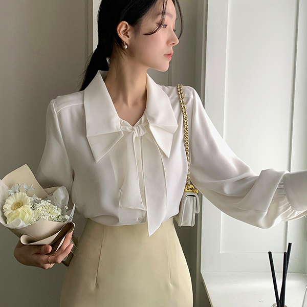 浪漫 翻盖式 领子 蝴蝶结 领带 罩衫
