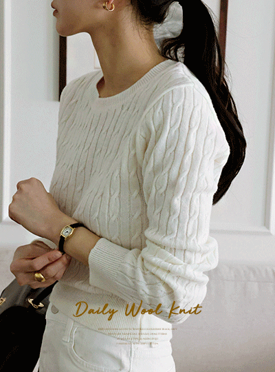 日常 圆领 缆绳 图案 羊毛 针织衫