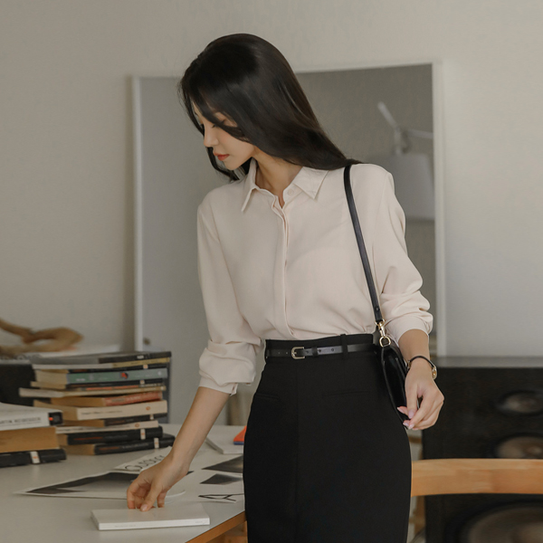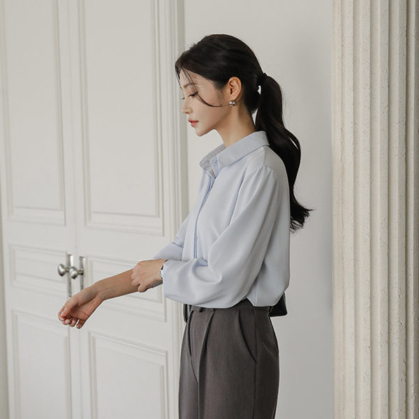 简单 衬衫 领子 隐藏 扣子 罩衫