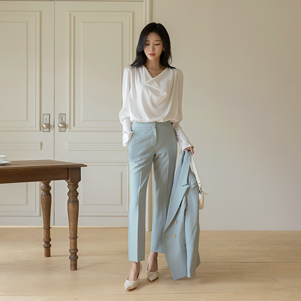 有光泽 드레이프넥 罩衫 (围巾SET)