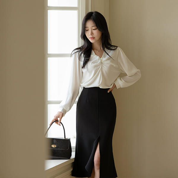 华丽 褶皱 打结 点缀 有光泽 罩衫