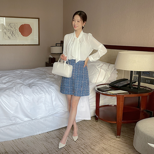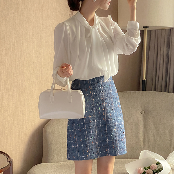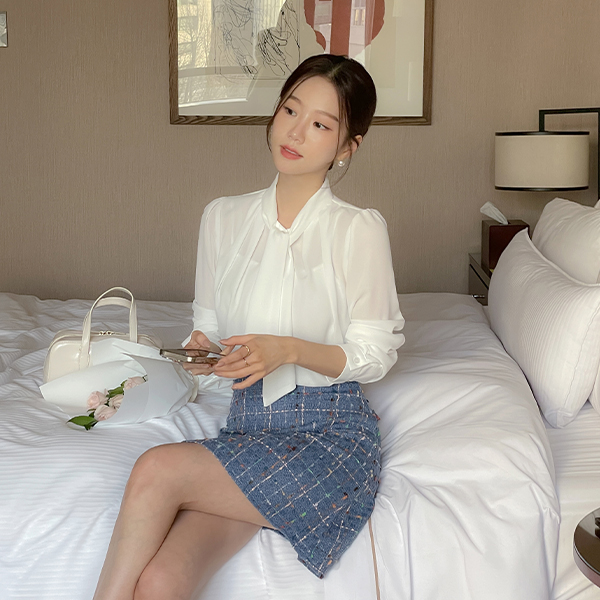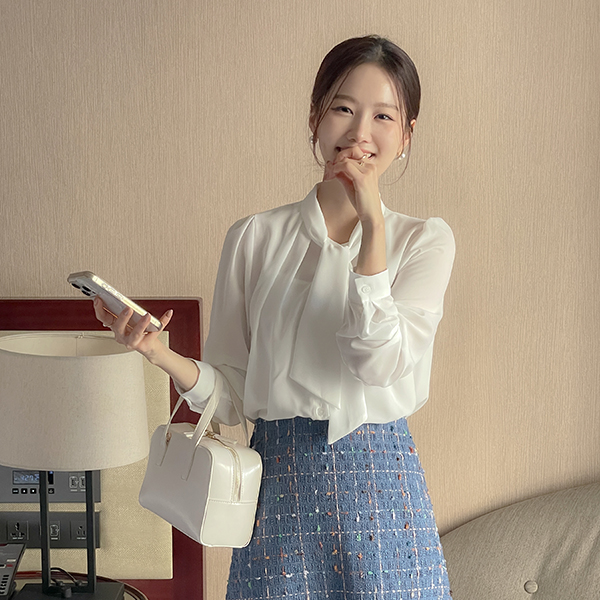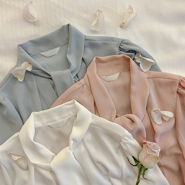 纯正&浪漫 情调 褶皱 领带 罩衫