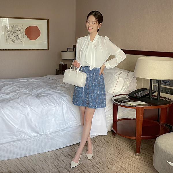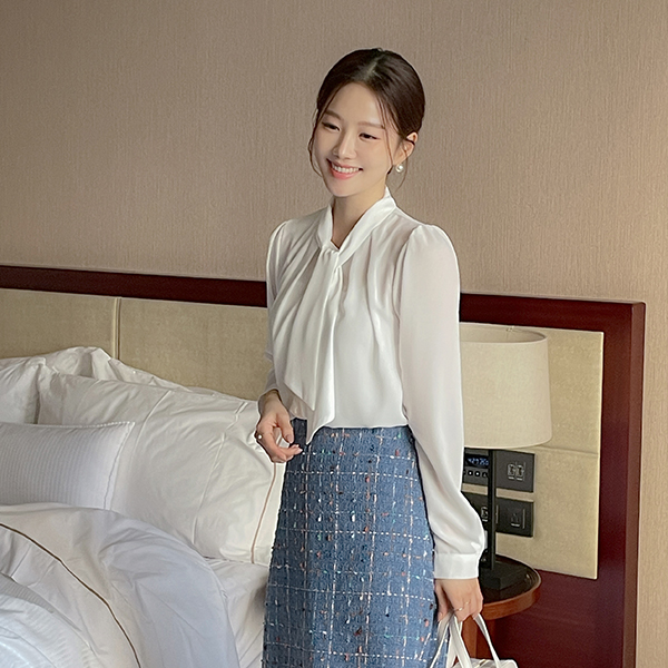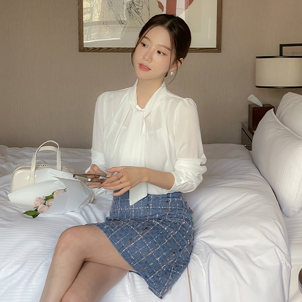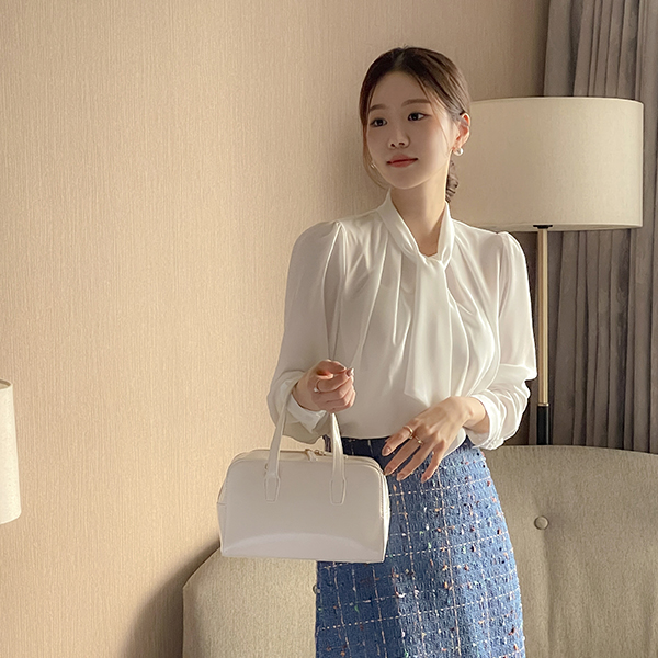 纯正&浪漫 情调 褶皱 领带 罩衫