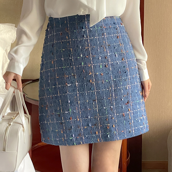 鲜明 颜色 粗呢 A字型 裙子