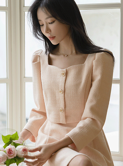 心形领 两件套 风格 A字型 粗呢 连衣裙