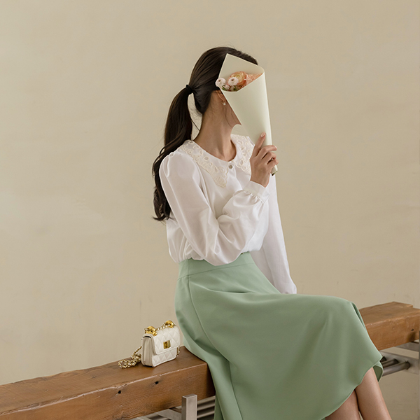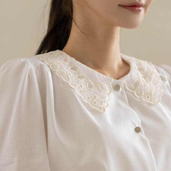 蕾丝 领子 天丝 棉 罩衫