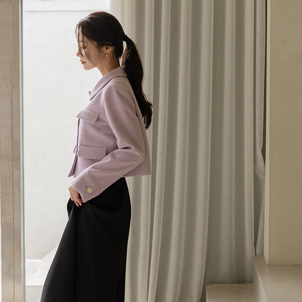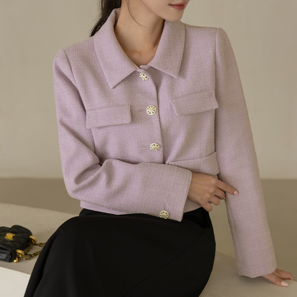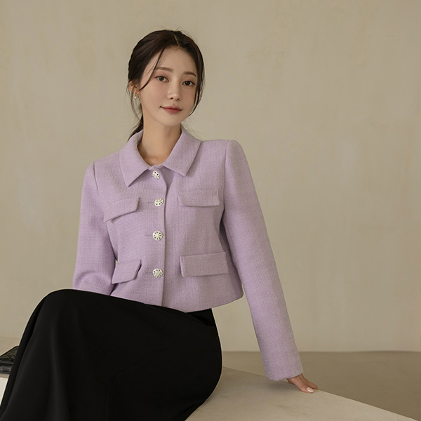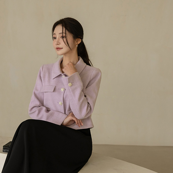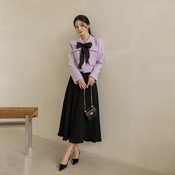 双重 配色 蝴蝶结 围巾领 粗呢 夹克
