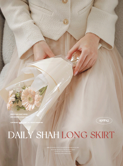 日常 薄纱 腰 松紧带 长款 裙子