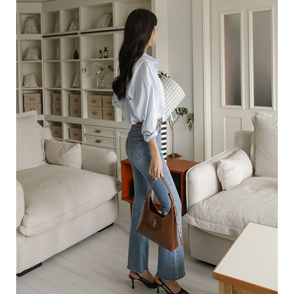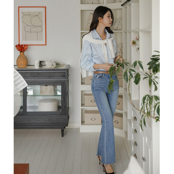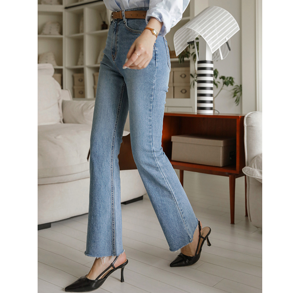 日常 底端 裁剪 斯利姆 喇叭 牛仔色 裤子