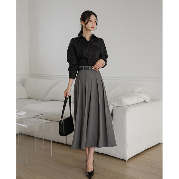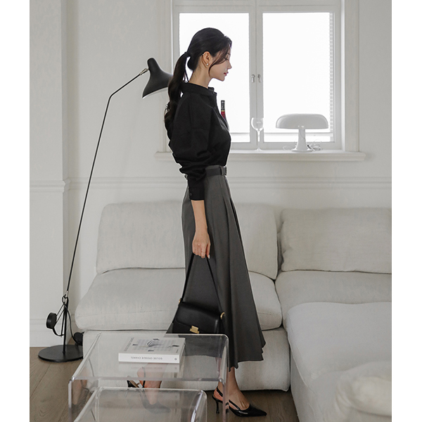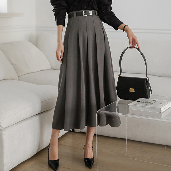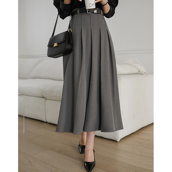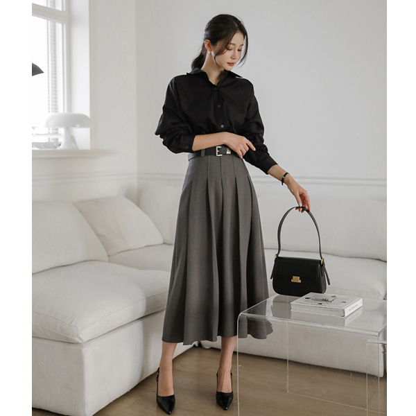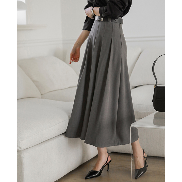 前面 褶边 细节 腰带 (套装) 长款 裙子