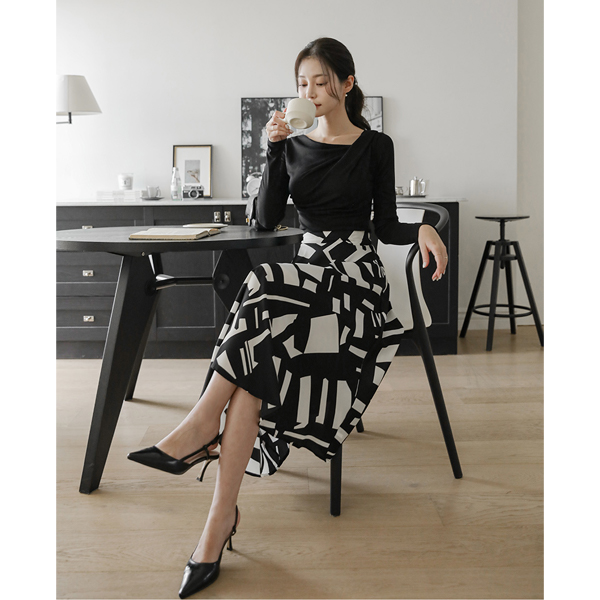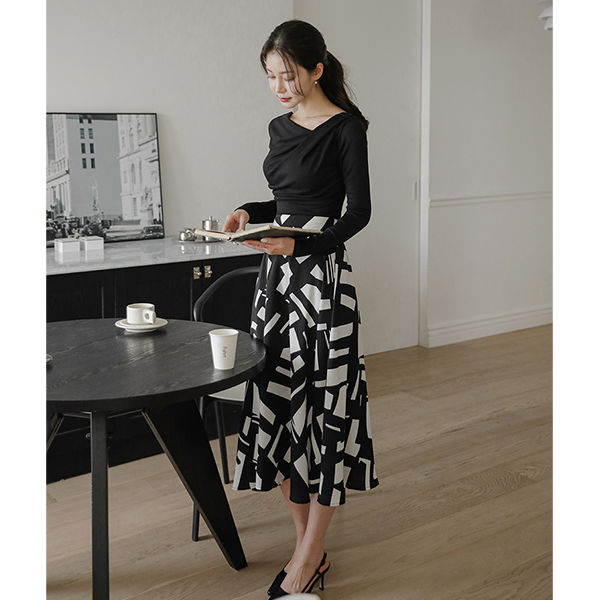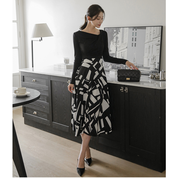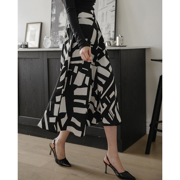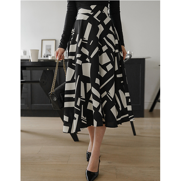 摩登 配色 点缀 喇叭 长款 裙子