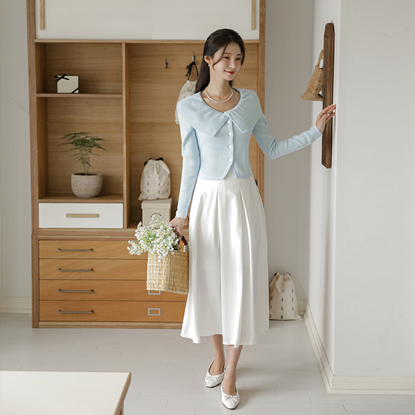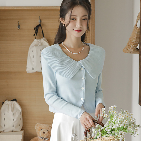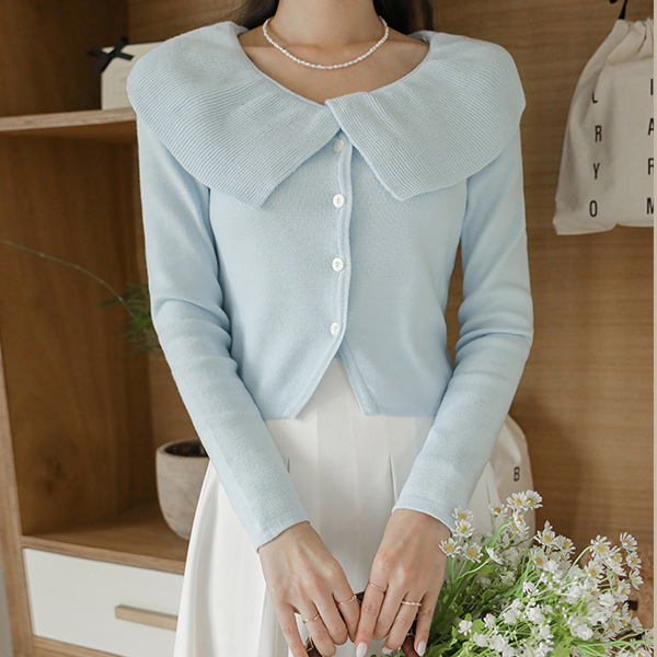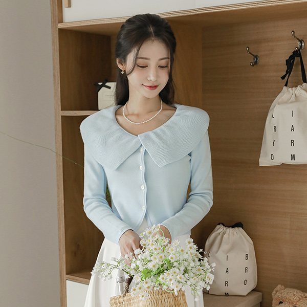 浪漫 宽松 荷叶 领子 针织衫 开衫