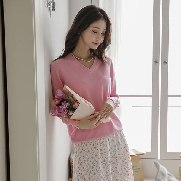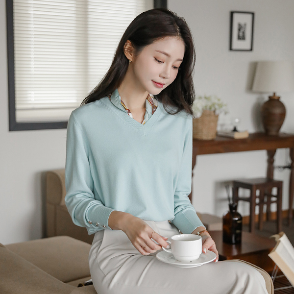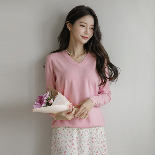 日常 V字领 粘胶 黄金 扣子 袖 针织衫