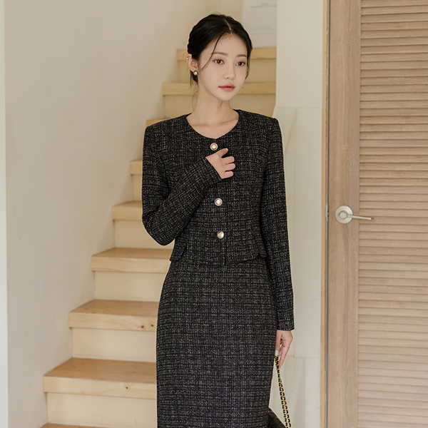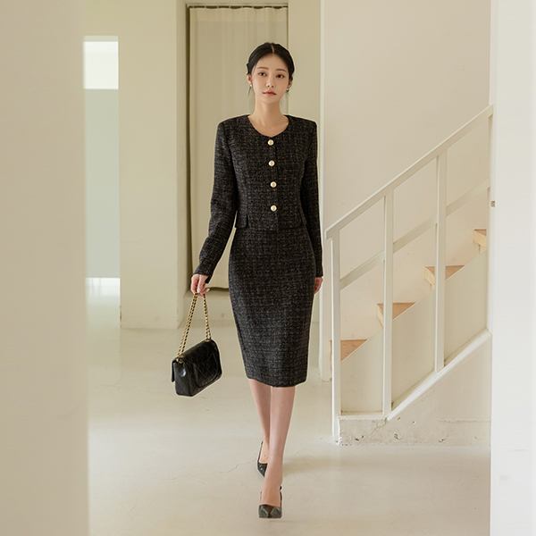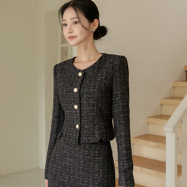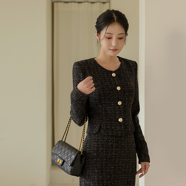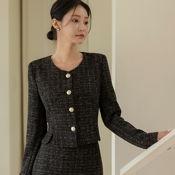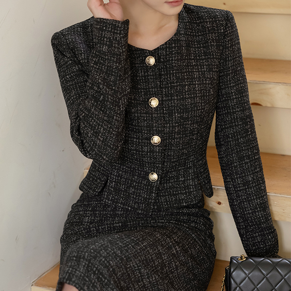 李娜 圆领 黄金 扣子 粗呢 斯利姆 夹克
