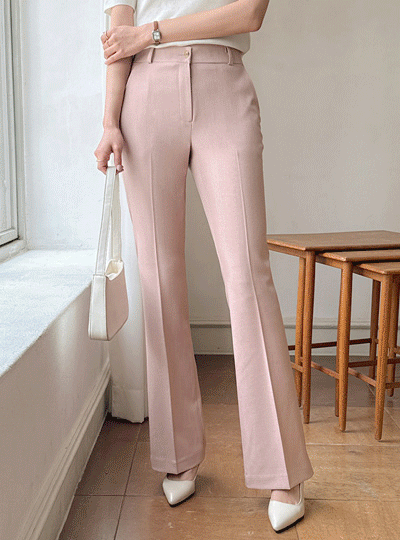 女性化的 线条 后侧松紧带 斯利姆 喇叭 宽松长裤